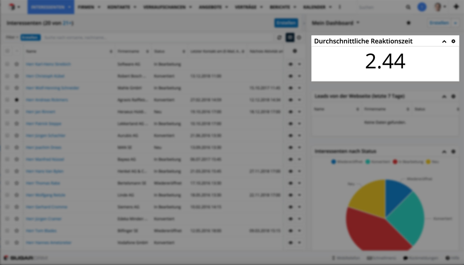 Umsatz, Anzahl Leads, Verkaufschancen, Sales Funnel – das sind Dinge, die du vermutlich auch regelmäßig auswertest bzw. im Blick hast. Aber weißt du, wie viele Tage es braucht, bis ein Angebot zum Abschluss kommt? Oder bei welchen Kontakten 90 Tage und länger keine Aktivität mehr stattfand?