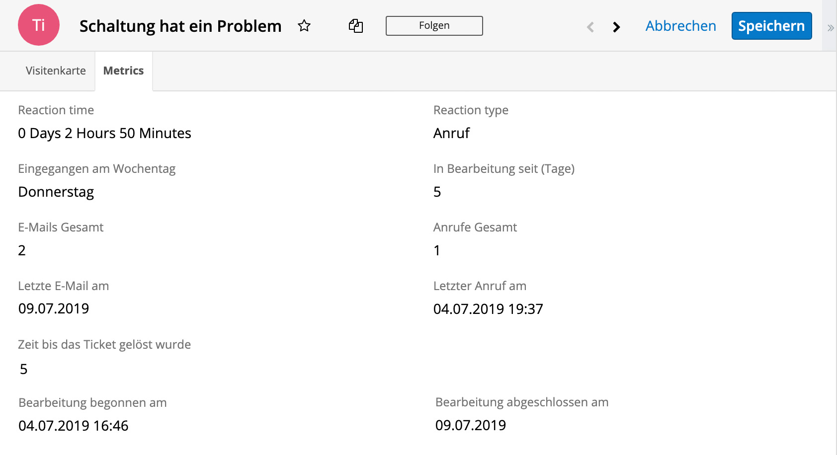 Bei den Best Practices etwas weiter unten zeigen wir unter dem Punkt „MyCRM-Metrics für das Ticket-Modul“, wie wir das Support-Modul noch etwas aufgebohrt haben, um zusätzliche Auswertungen zu erhalten.