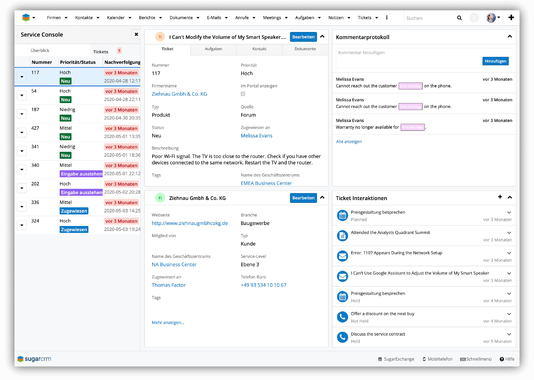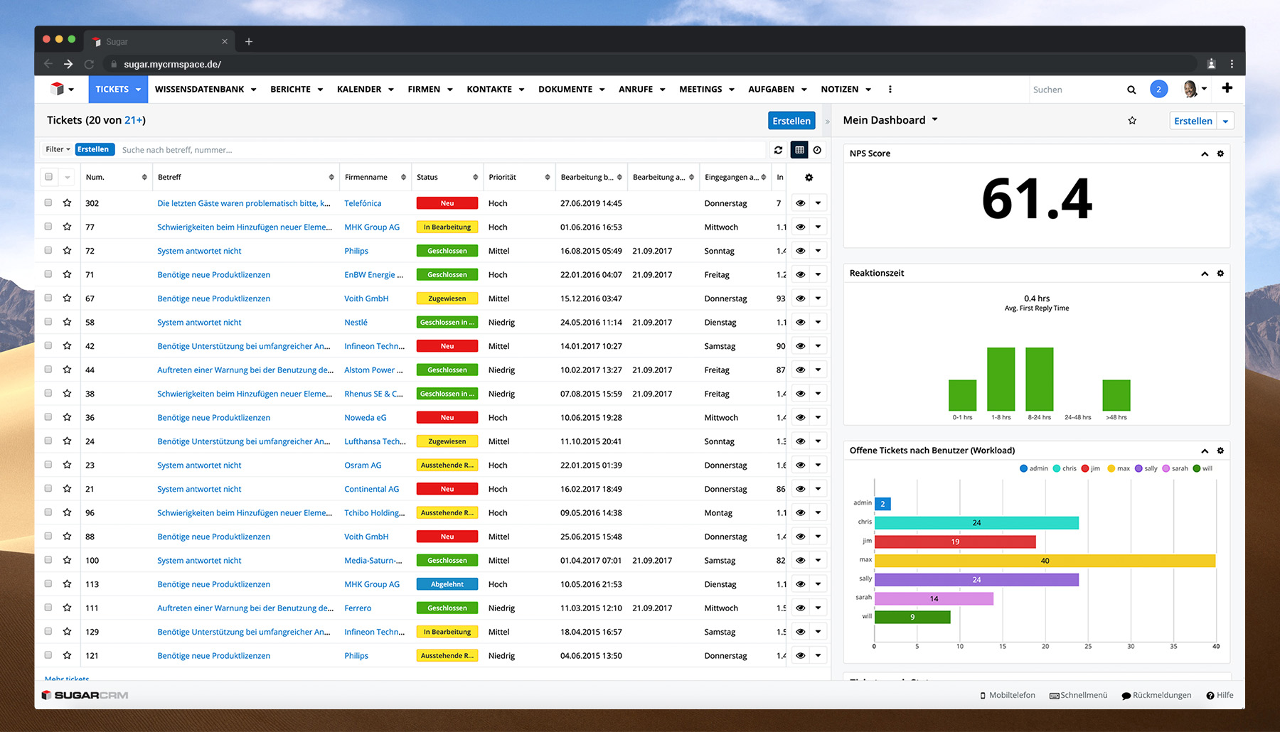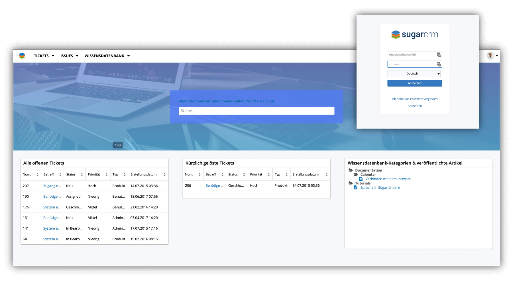 SugarCRM bietet aber noch mehr für den Bereich Support / Kundenservice.