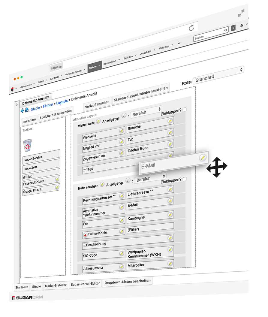 In Sugar kannst du nicht nur Felder und Auswahllisten einfach anpassen, sondern auch neue Module erstellen und sie mit den Standardmodulen verknüpfen.