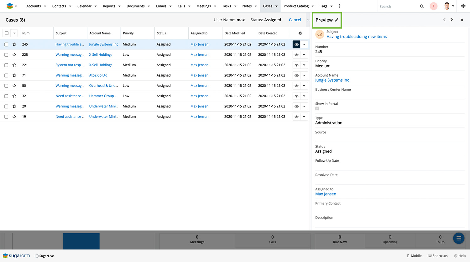 Mit dem Sugar Q1/2021-Release kannst du diese Einträge auch direkt bearbeiten. Einfach auf das „Auge“-Symbol klicken und schon öffnet sich rechts ein Bearbeitungspanel.