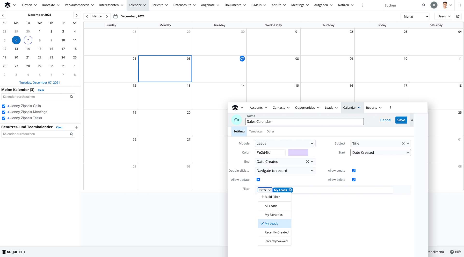 Zu den Highlights von Sugar Professional Q4 2021 gehören noch die folgenden Funktionsupdates:
