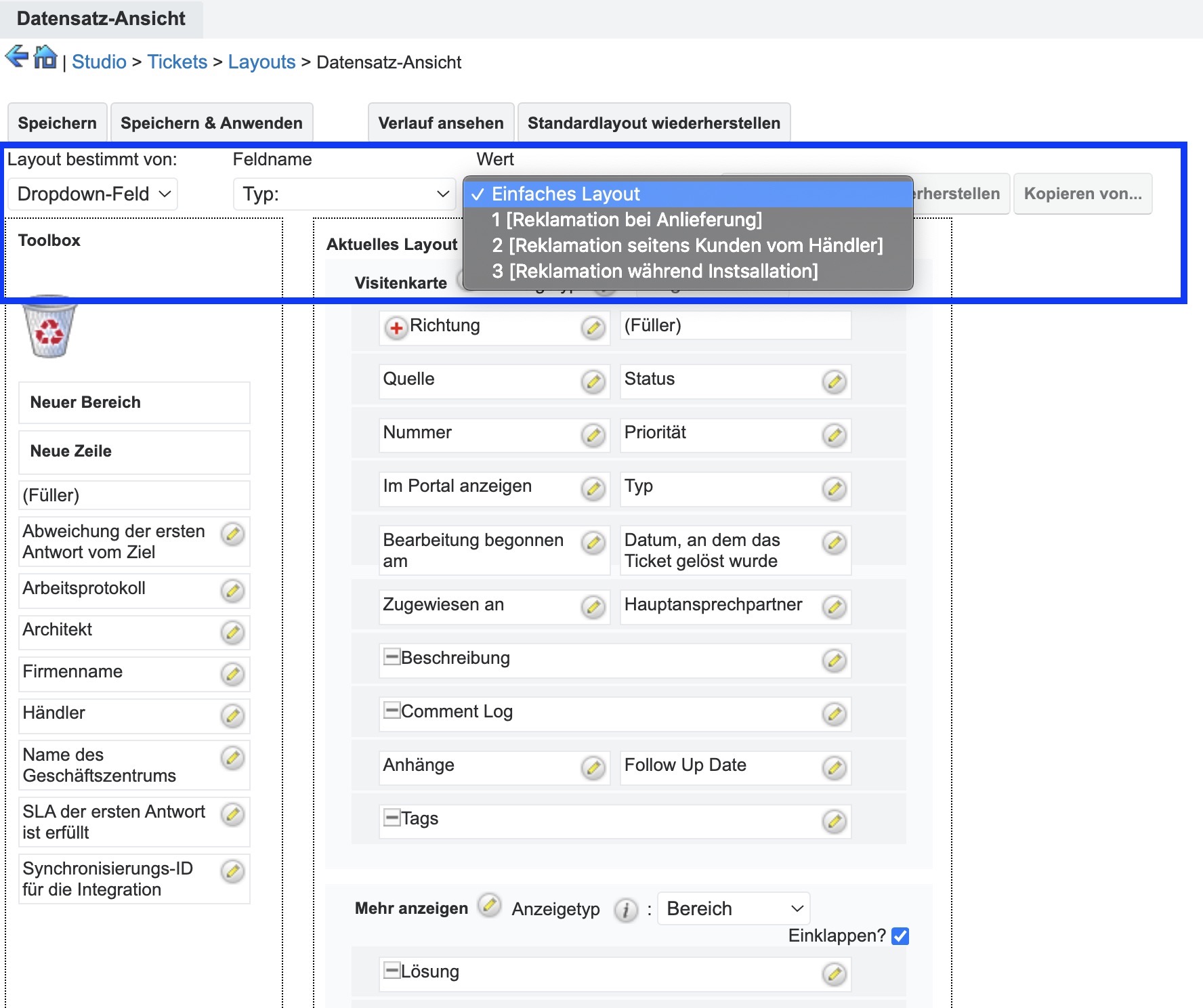 4. Dropdown-bedingte Layouts für Datensatzansichten