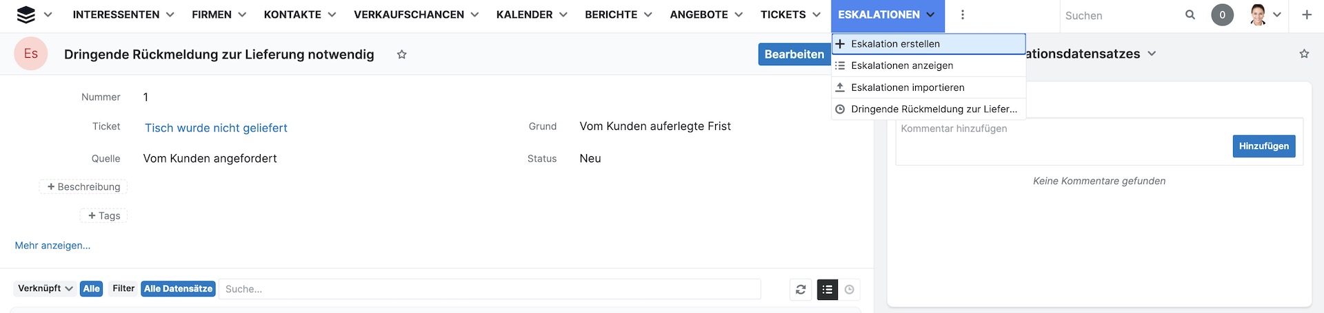 Mit dem neuen Modul „Eskalationen“ Modul können Firmen, Verkaufschancen und Tickets markiert werden, um besser eskaliert werden zu können, ganz unabhängig vom Support, Vertrieb oder Marketing. Die Aktion „Eskalieren“ ist direkt für Datensätze verfügbar, die eskaliert werden können, um ein Problem schnell zu lösen. Bei Datensätzen mit mindestens einer offenen Eskalation wird in vielen Ansichten in Sugar ein gut sichtbarer Eskalations-Badge angezeigt, so dass alle Benutzer, die mit dem Datensatz arbeiten, über dessen Status informiert sind.