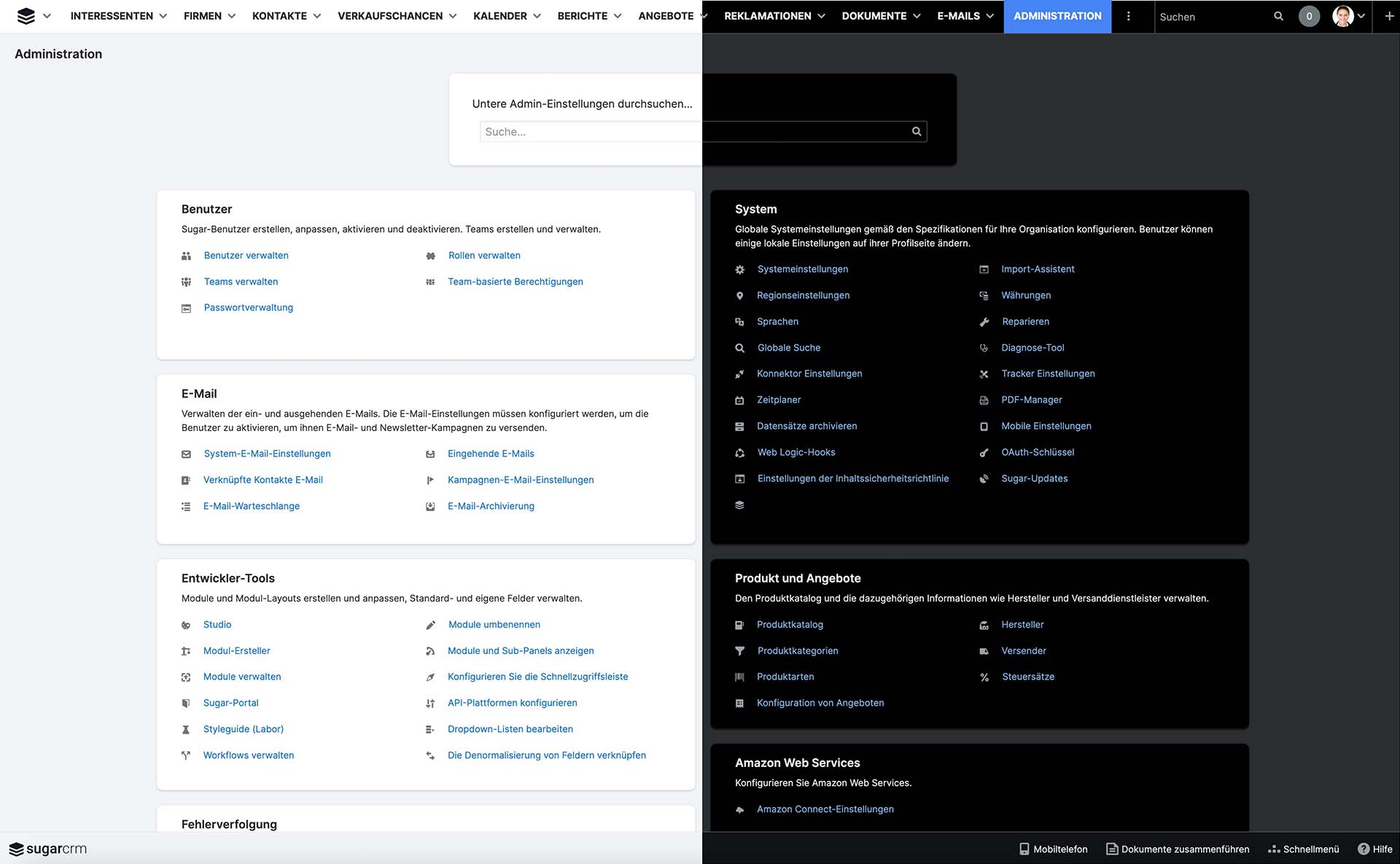 SugarCRM hat für das neue Jahr die sowieso modern wirkende Oberfläche weiter optimiert. Zu den Verbesserungen gehören eine neue Schriftart und verbesserte UI-Elemente in Dashboards, Dashlets, Listenansichten, Datensatzansichten und im Dunkelmodus. Diese Version enthält auch Aktualisierungen des Erscheinungsbildes von Grafikdiagrammen (auch ganz neue Darstellungsoptionen) für Berichte und Dashlets, die Geschwindigkeit der Animation und der Farbpaletten.