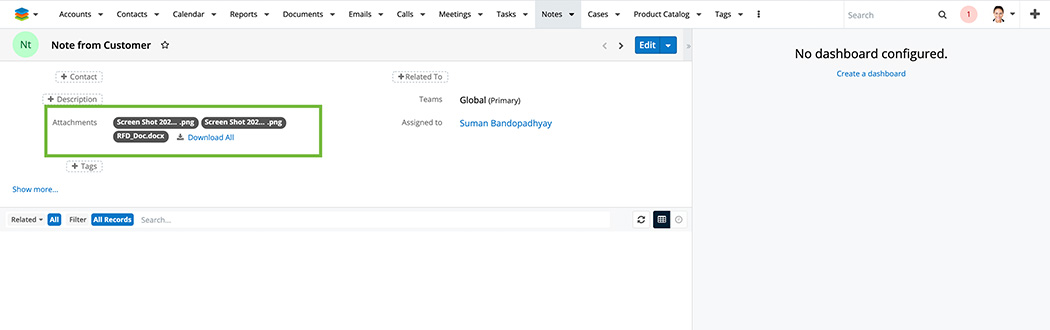 Damit ist das Hochladen von Anhängen nicht mehr auf eine Datei limitiert. Somit können mehrere Dateien in einer Notiz zusammengefasst und die Anzahl von potenziellen Notizen reduziert werden.