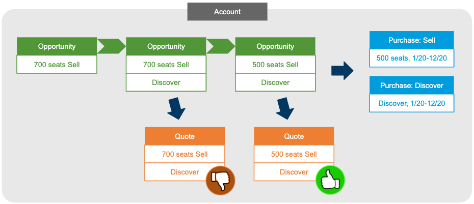 Damit kann die Vertragslaufzeit von zeitbasierten Produkten und Services auf sämtliche Positionen der Verkaufschance angewandt werden. Hilfreich ist das, wenn die einzelnen Positionen unterschiedliche Laufzeiten haben, also ein Abo zwei Jahre, ein Service-Vertrag drei Jahre.