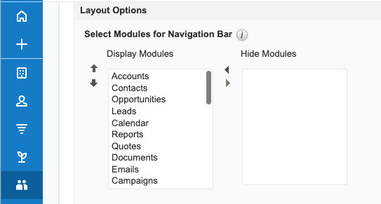 Sugar hat im Rahmen der Neugestaltung der Benutzeroberfläche das Konzept der „angehefteten Module“ eingeführt. Vier Modul-Symbole sind für den Benutzer immer sichtbar. Hinweis: Wenn ein Benutzer auf ein Modul fokussiert, das sich nicht unter den angehefteten Elementen befindet, wird es als fünftes Element auf dem Bildschirm hinzugefügt.